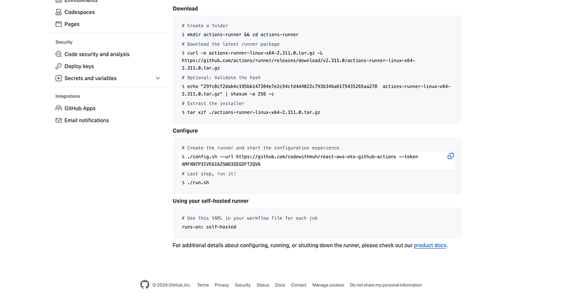 ./config.sh --url https://github.com/codewithmuh/react-aws-eks-github-actions --token AMFXNTP3IVE6IAZSWO3ZEGDFT2QV6