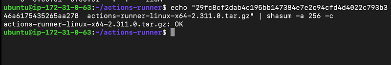 echo "29fc8cf2dab4c195bb147384e7e2c94cfd4d4022c793b346a6175435265aa278 actions-runner-linux-x64-2.311.0.tar.gz" | shasum -a 256 -cNow Extract the installer
