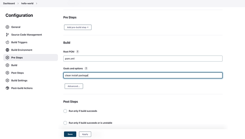 Go to your pipeline job hello-world -> configuration -> Build Triggers